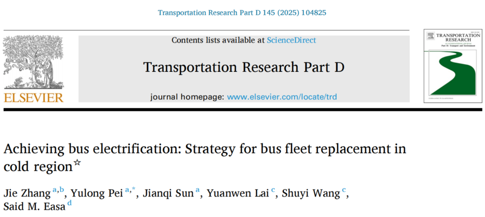 近日,我院张杰老师作为第一作者在交通领域国际顶刊《Transportation Research Part D: Transport and Environment》(中国科学院1区)发表题为“Achieving bus electrification: strategy for bus fleet replacement in cold regions”的研究论文。