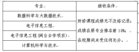 1.各专业入条件符合《宁德师范学院本科学生转专业实施办法》规定的转专业的基本要求;