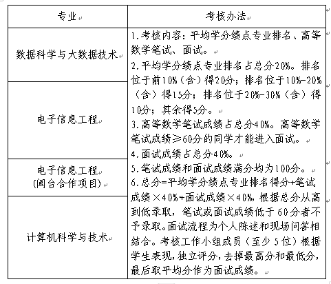 我院根据各专业接收条件对申请转入的学生进行资格审核,所有符合转入相应专业接收条件以及通过高等数学笔试成绩要求的学生均需参加面试考核。各专业考核办法如下: