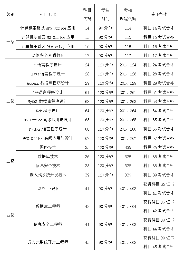 注:二级语言类及数据库类科目获证条件:总分达到60分且选择题得分达到50%及以上(即选择题得分要达到20分及以上)的考生方可取得合格证书。