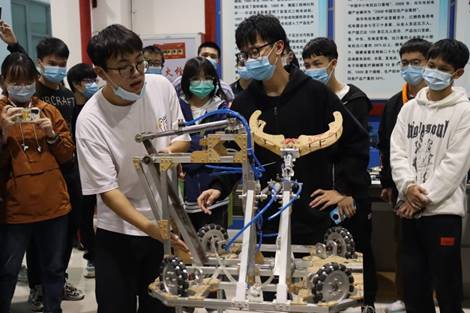 图9 新生亲手操控机器人,体验机械制作带来的乐趣
