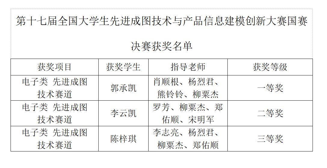 7月27-29日,由全国大学生先进成图技术与产品信息建模创新大赛组委会主办,贵州大学承办的第十七届全国大学生先进成图技术与产品信息建模创新大赛圆满举行。我院学子参加电子类专业竞赛。经过激烈角逐,参赛学生荣获国家一等奖1项,二等奖1项,三等奖1项的好成绩。