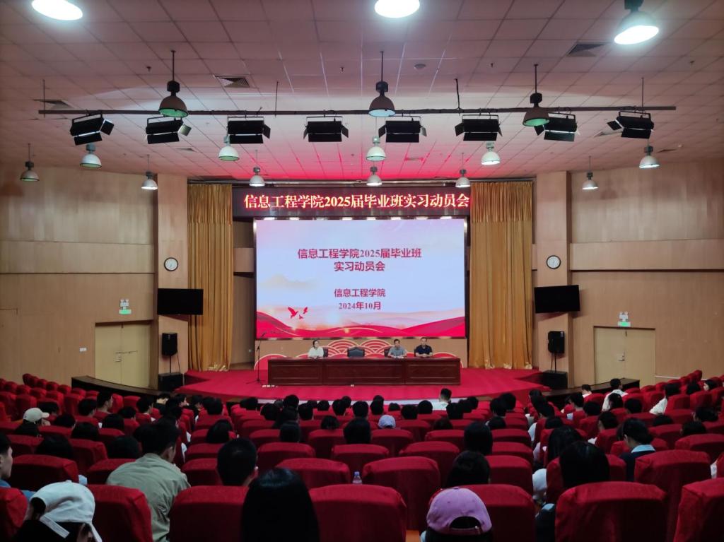 为明确实习目的,强化安全意识,确保每位实习生都能以最佳状态步入社会课堂,将所学知识转化为实践技能,2024年10月9日,我院在图书馆报告厅举行2025届毕业生实习动员大会,院长肖顺根、数据科学系系主任冯玮、电子信息工程系系主任杨烈君、毕业班辅导员及全体毕业班学生参与会议。