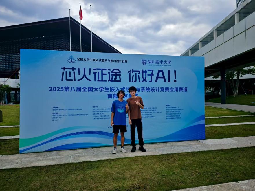 近日,由中国电子教育学会主办的2025第八届全国大学生嵌入式芯片与系统设计竞赛应用赛道南部赛区在深圳科技大学圆满收官。我院学子苏星维、肖伟奇、陈展辉组成的团队,凭借作品《基于CH32V307VCT6的早餐摊智能收银终端与AI语音交互系统优化》,在指导老师林莲芳、王宇钖的悉心指导下,从众多参赛队伍中脱颖而出,荣获南部赛区二等奖。