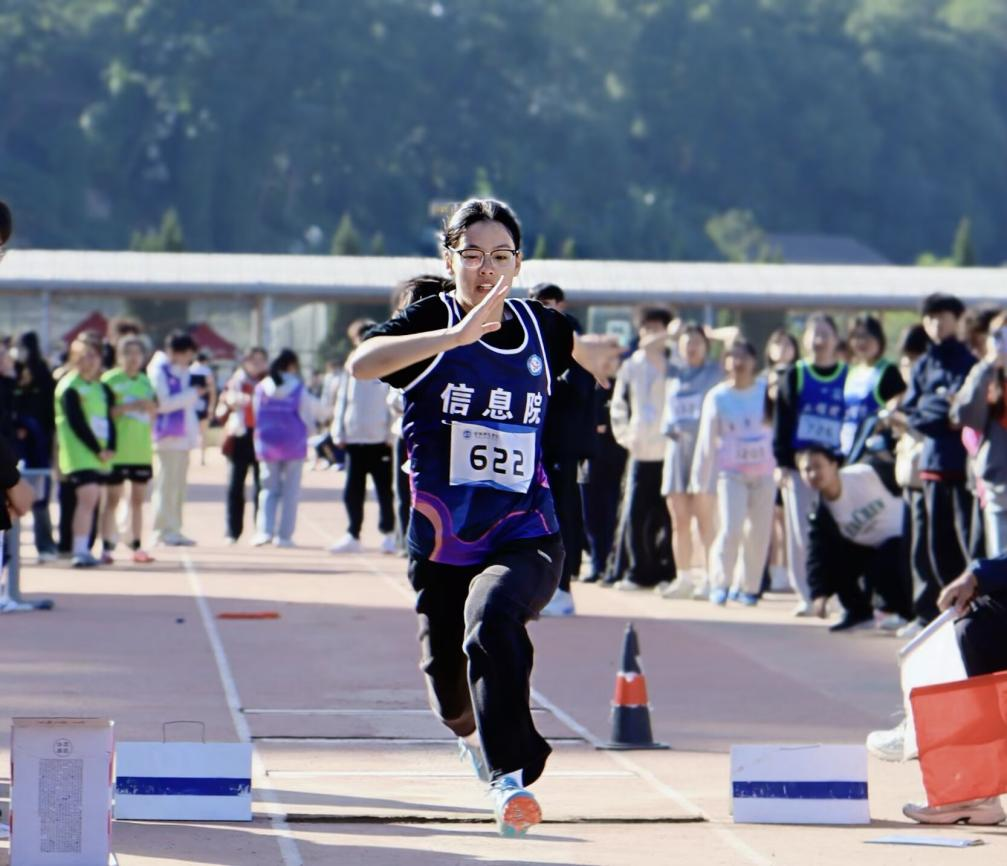 赛场上,运动员们奋勇拼搏、尊重规则、团结协作,展现出良好的拼搏精神与体育风尚。陈和芳同学在跳远比赛中带伤坚持,勇夺双项冠军;在女子公体400米决赛中,陈思妃选手身姿矫健、节奏稳健,全程保持领先优势,最终以出色表现斩获冠军,彰显强劲实力!他们生动诠释了顽强拼搏、永不言弃的体育精神,为全院学子树立了光辉的榜样。
