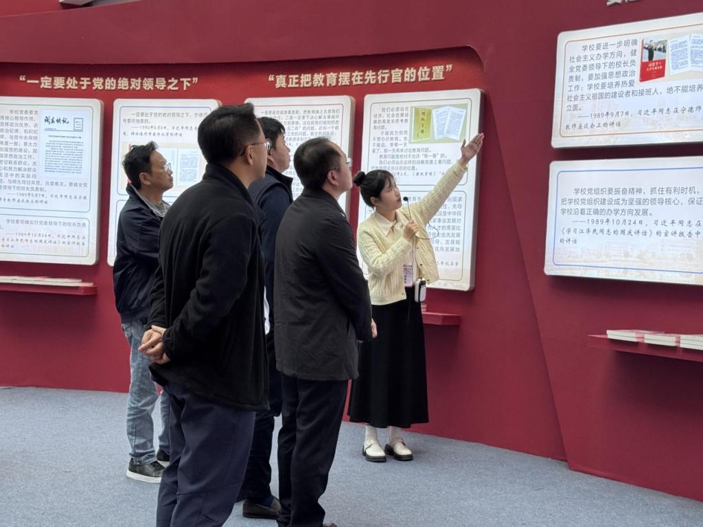 活动伊始,校外专家团队共同参观了习近平总书记 “六进宁师” 主题展。讲解员以生动的图文资料为依托,详细讲述了习近平总书记在宁德工作期间六次到校调研指导、两次为师生做形势政策报告的珍贵历程。各位专家学者在展板前驻足凝视,认真学习习近平总书记关于教育的重要论述在宁德师范学院的实践成果,深刻体会学校 “牢记嘱托、感恩奋进” 的发展脉络,充分感受校园浓厚的红色文化氛围。