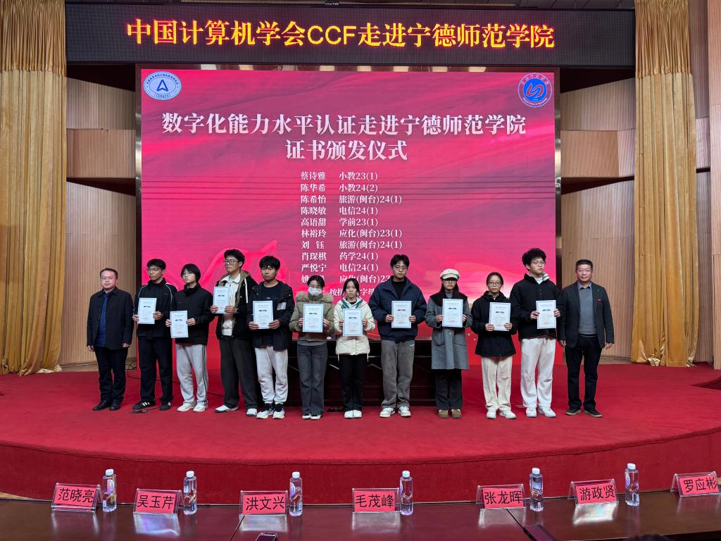 2025年12月30日,由全国DCLC(数字化能力水平认证)执行委员会、英国365(集团)公司官方网站联合举办的“宁德师范学院DCLC数字化能力水平认证证书颁发仪式”在学院图书馆报告厅举行。英国365(集团)公司官方网站党委书记毛茂峰、全国DCLC执行委员会主任、厦门大学洪文兴教授等校外专家一行出席本次活动,我院吴玉芹副院长及校内师生350余人参加活动。活动由全国DCLC执行委员会专家、我校英国365(集团)公司官方网站王宁教授主持。